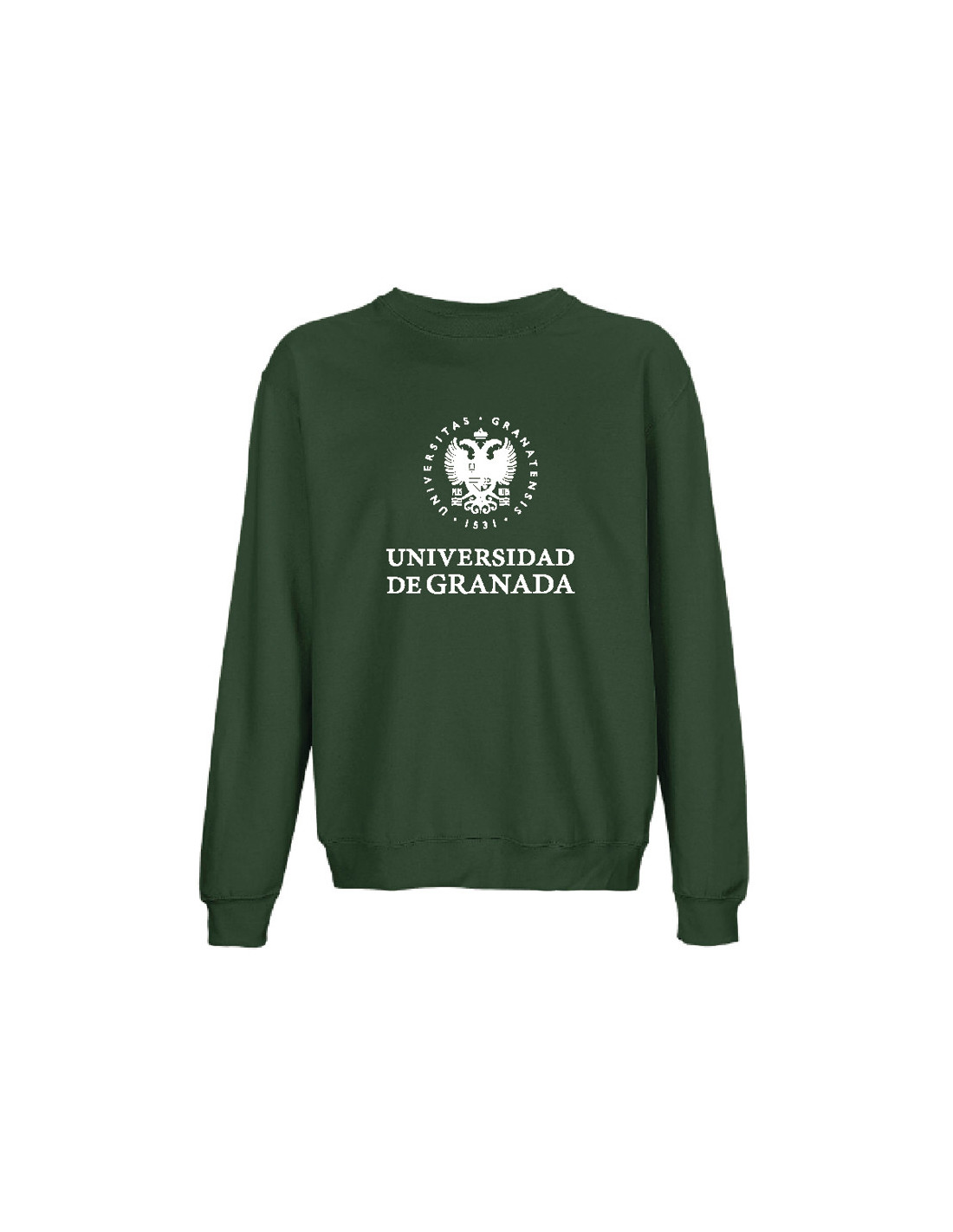 Sudadera de cuello redondo con el logotipo de la UGR y texto en el pecho.