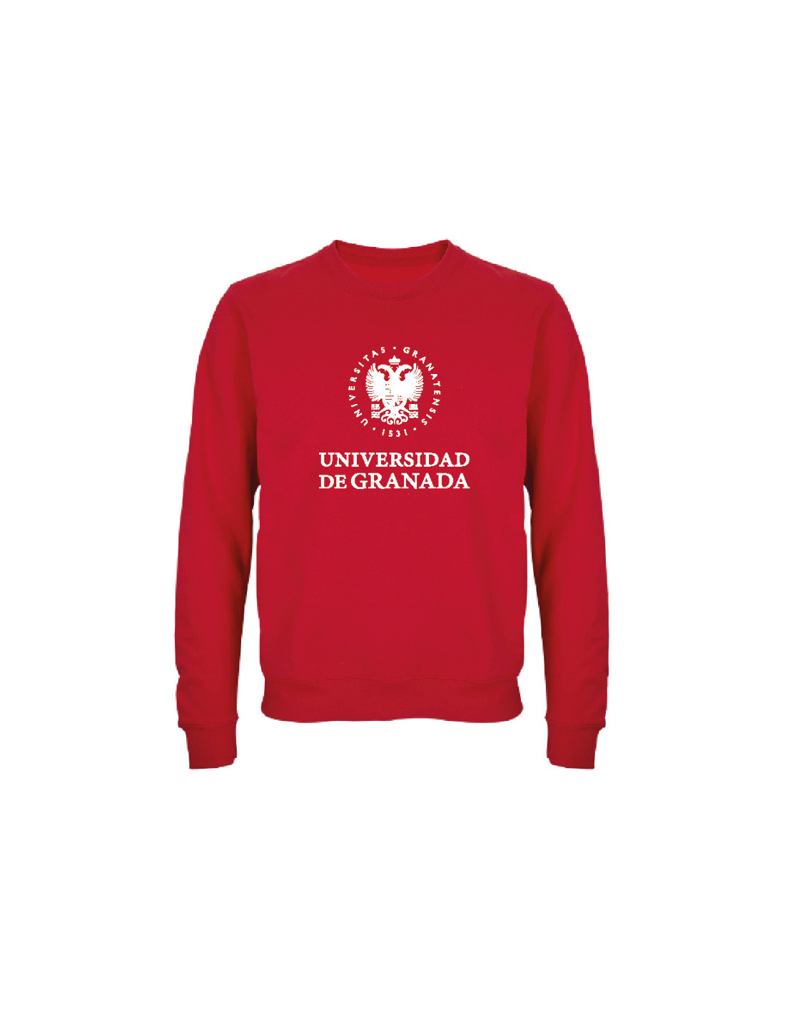 Sudadera de cuello redondo con el logotipo de la UGR y texto en el pecho.